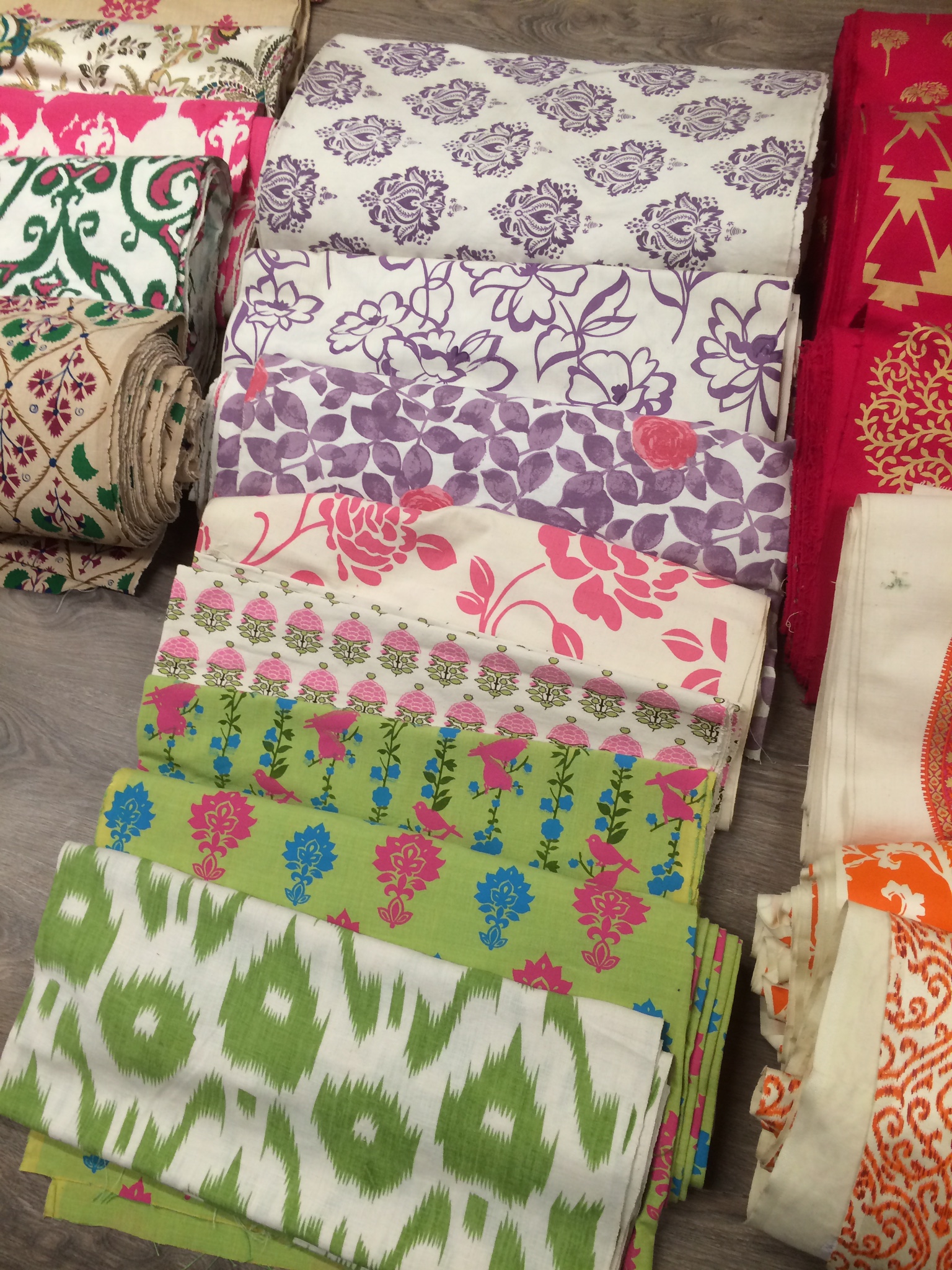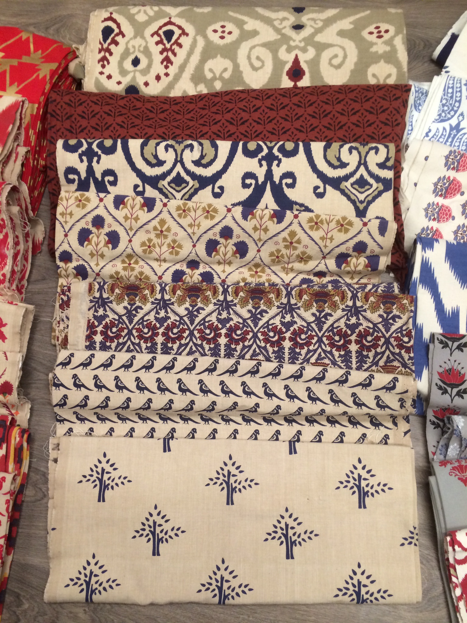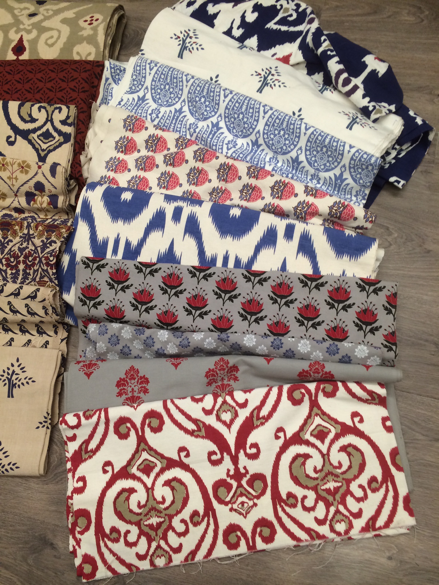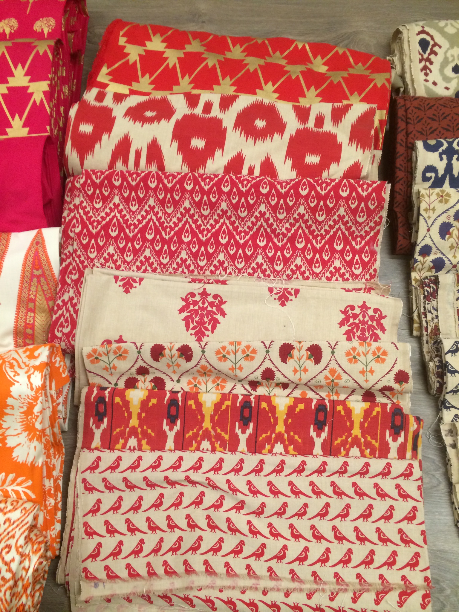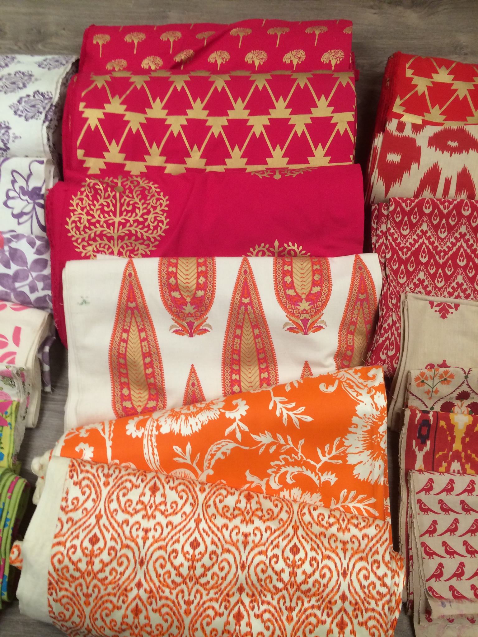 The fabrics are designed and traditionally screen printed in India and are available in a wide range of colours from brights to neutrals, patterns, ikats and plains. They are all 100% natural.