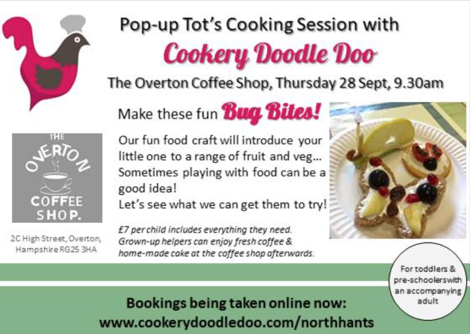 This fabulous cookery session for toddlers and preschoolers is taking place on Thursday 28th September at 930am at Overton Coffee Shop.