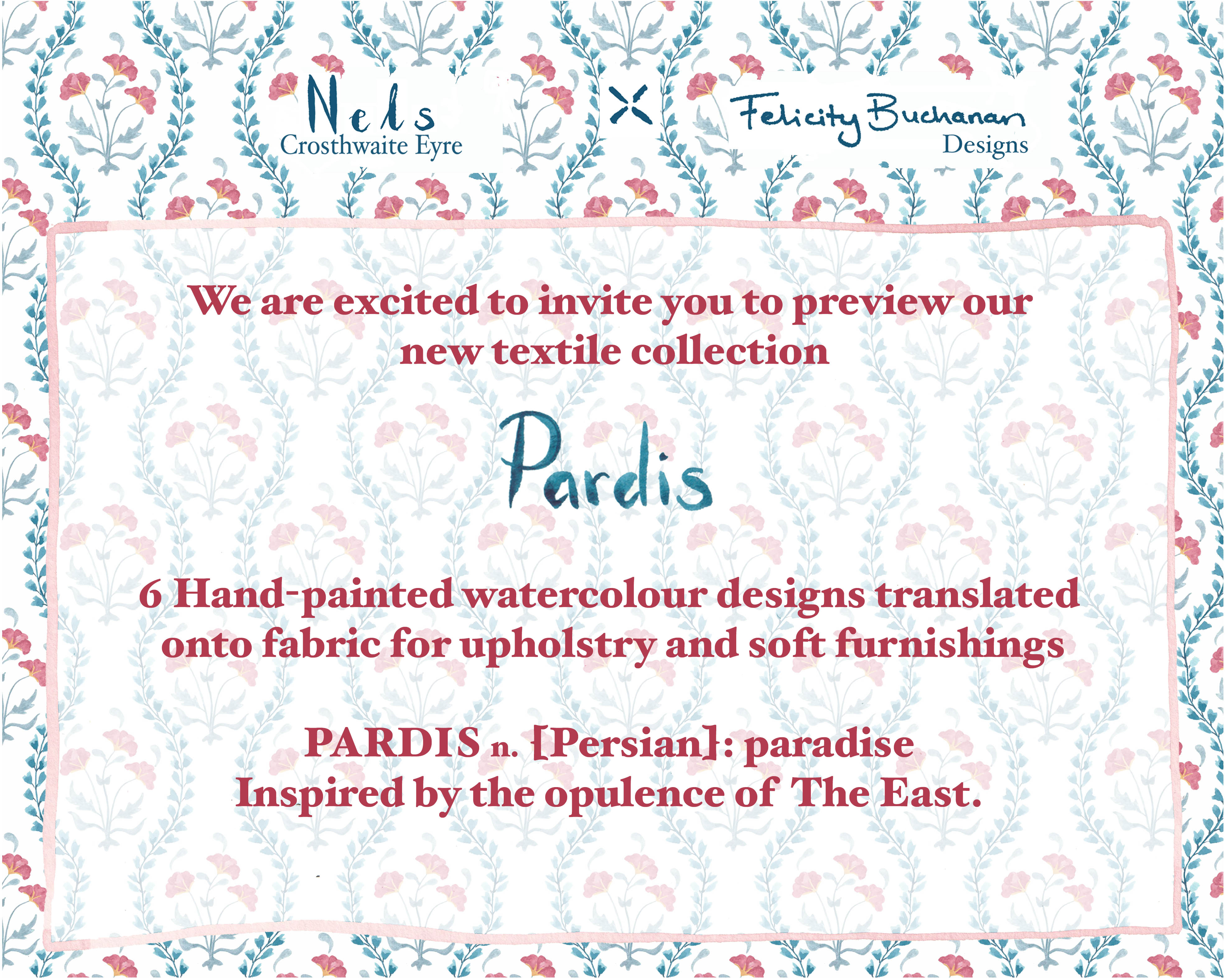 There will also be a preview of a new fabric collection – Pardis – a collaboration of interior designer Nels Crosthwaite Eyre and watercolour artist Felicity Buchanan, who has translated her gorgeous designs onto linen. Inspired by the art and architecture of the Ottoman and Mughal worlds, expect lots of colour and pattern.