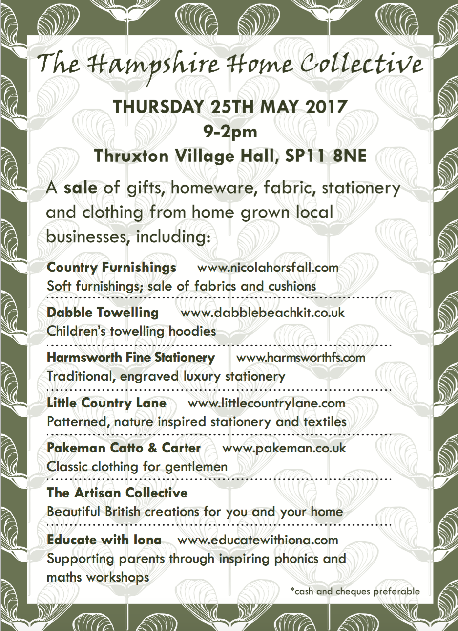 Refreshingly scheduled outside of the seasonal holiday fairs, come to a brilliant local sale of marvellous wares in Thruxton Village Hall: