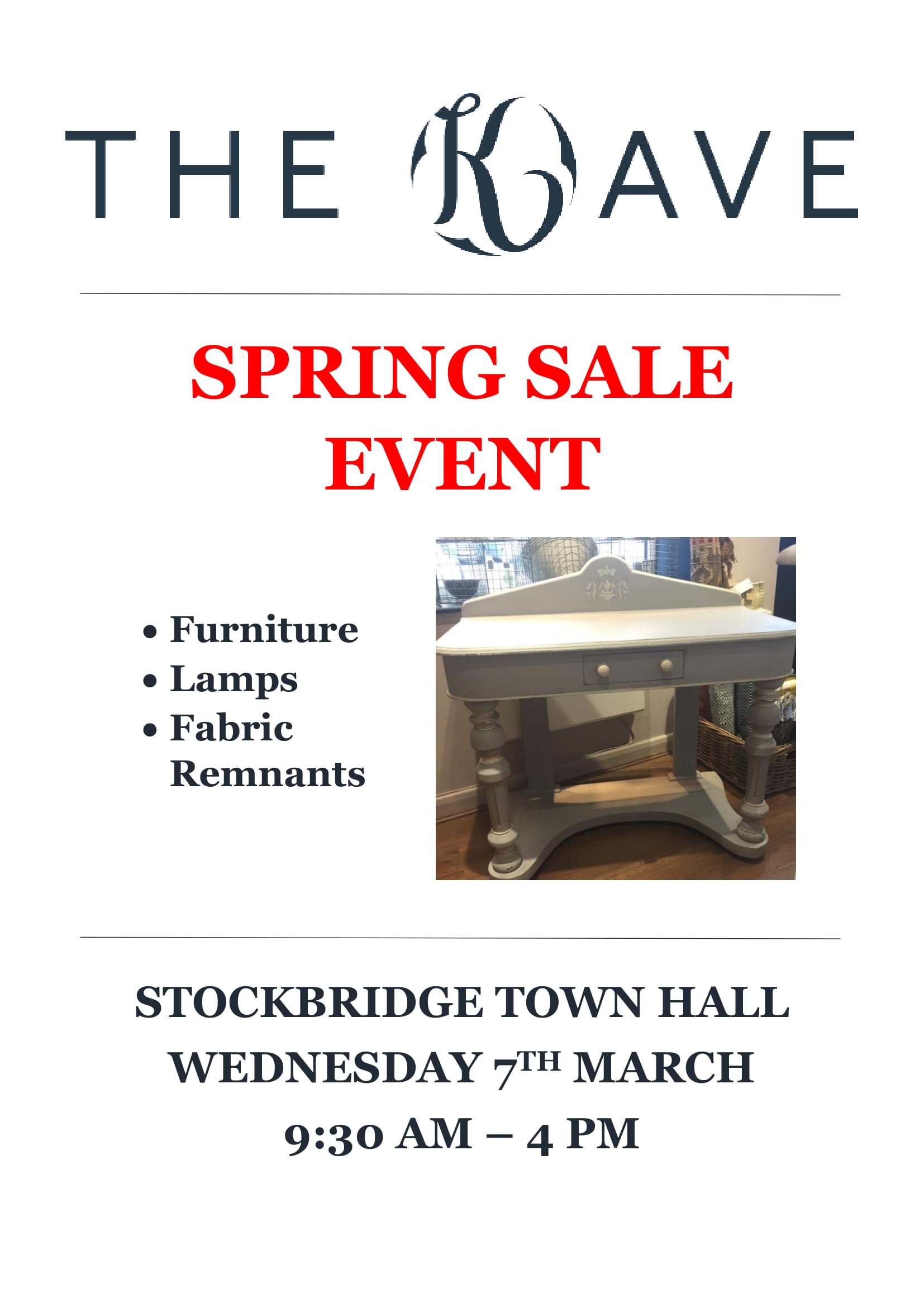 Come and pick up a bargain at The Kave Spring Sale at Stockbridge Town Hall on Stockbridge High Street: